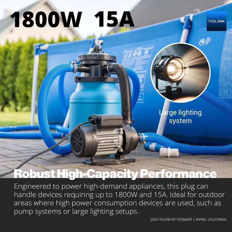 - Robust High-Capacity Performance: Engineered to power high-demand appliances, this plug can handle devices requiring up to 1800W and 15A. Ideal for outdoor areas where high power consumption devices are used, such as pump systems or large lighting setups.