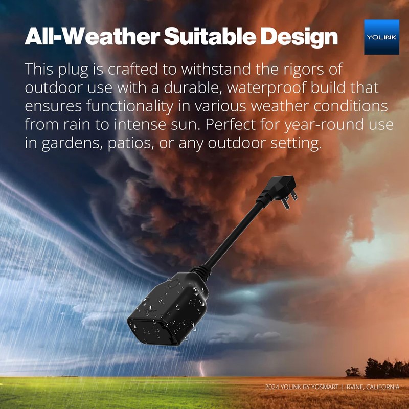 YoLink Smart Outdoor Energy Plug, IP65, 1800W, 15A Smart Plug with Real-Time Energy Monitoring, Automatic Safety Shutoff, Alexa & Google Assistant Compatible, Include YoLink Hub