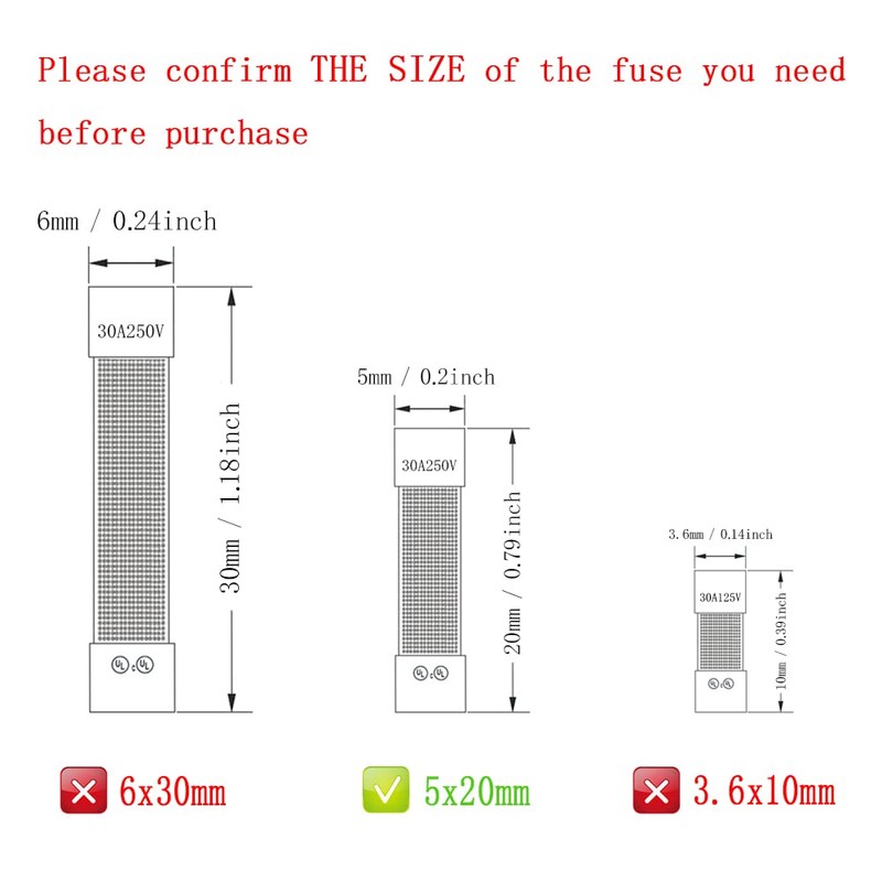 - Notice: Please confirm the SIZE/AMP RATING of the fuse you need before purchase