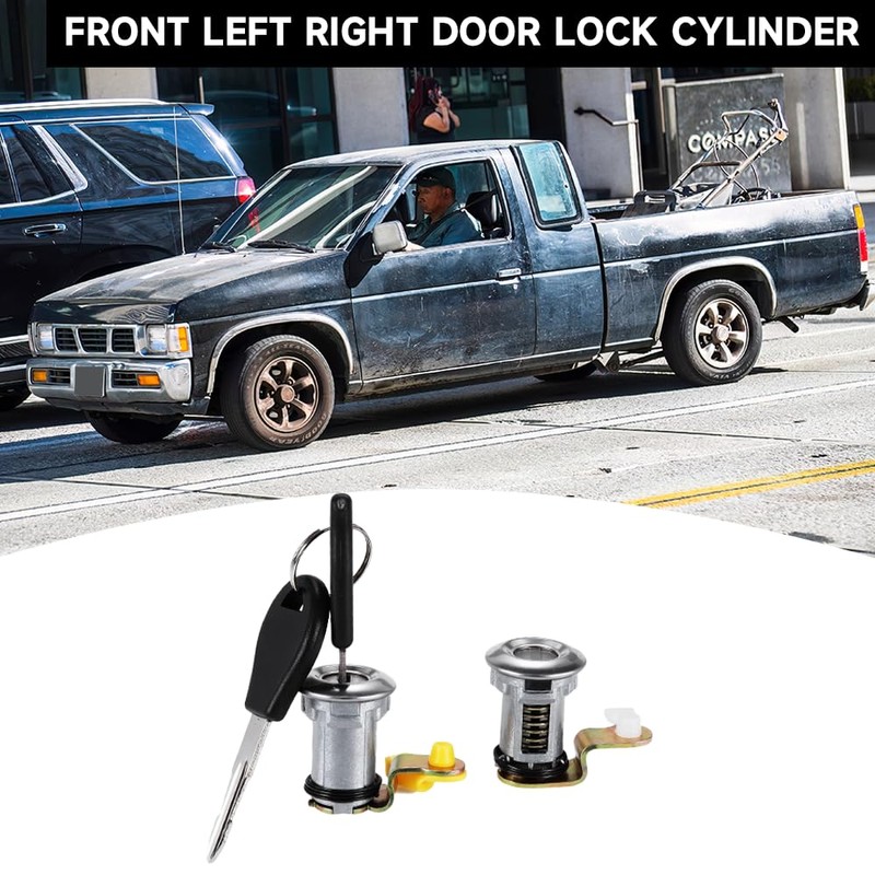 Yollky Front Left Right Door Lock Cylinder Set with Key for Nissan Pickup 1984-1998 for Nissan D21 1986-1994 | 2 Keys 2 Gasket | Replaces 80600-01G25, 80601-01G25