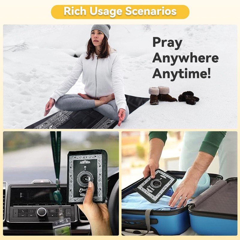 - Integrierter Kompass: Dieses Reisegebetsteppich verfügt über einen integrierten Kompass, mit dem Sie die Gebetsrichtung in verschiedenen Umgebungen leicht bestimmen können. Wenn Sie auf Reisen sind, können Sie sich darauf verlassen, dass gebetsteppich set eine genaue Gebetsleitung gewährleistet ist und Ihre Gebetsaktivitäten bequemer und reibungsloser verlaufen.