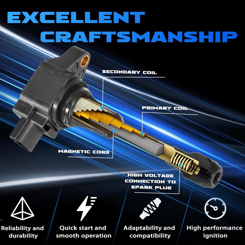 - 【High Performance】: Premium quality ignition coils utilize advanced technology and materials for high efficiency and outstanding reliability. Ignition coils provide powerful ignition capability to ensure proper engine starting and running. They can work under various working conditions and have a long service life
