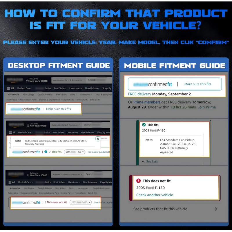 1. Please check and confirm the model number, part number and picture of the part before purchase to make sure the product is suitable for your car and truck.