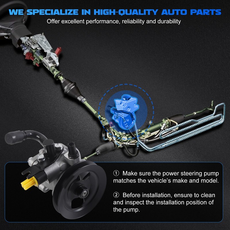 - 【FEATURES】- Our power steering pump ensures smooth operation and quiets whining. If you notice rough wheel movement, slow steering response, stiffness, or unusual noise, inspect the power steering pump and replace it if defective