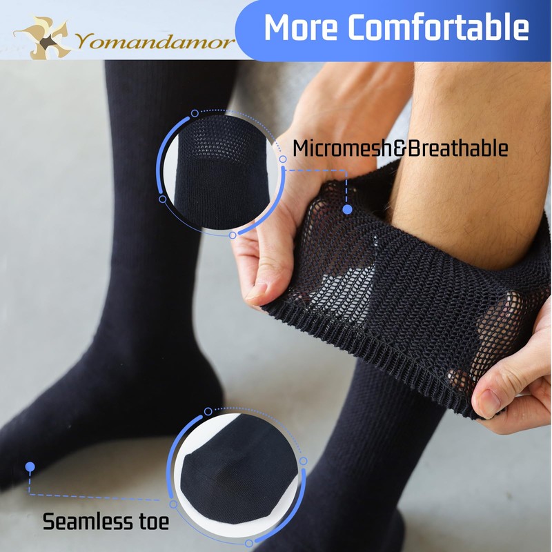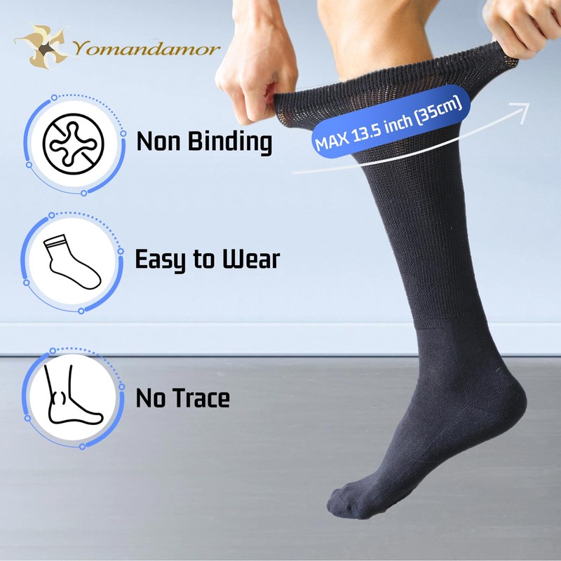 Yomandamor Mens Diabetic Over The Calf Socks,4 Pack Size 10-13
