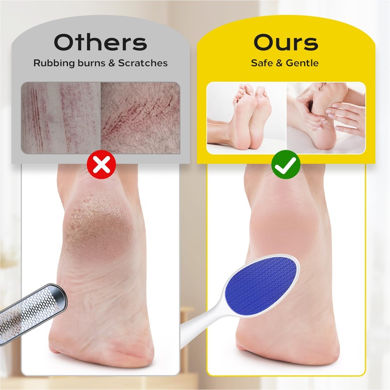 - Circle Texture is Smooth and comfortable: The upgraded circular-patterned side glides smoothly across skin, capturing and removing fine hairs and dead skin at the feet without tugging or redness.