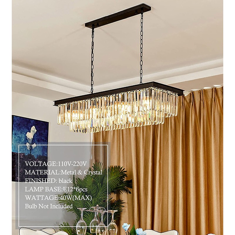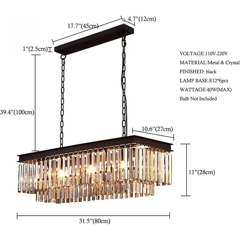 - Retro and Luxury Design: The combination of black metals and top K9 clear crystal creating a rustic yet luxurious retro atmosphere. The lamp base of this rectangular chandelier is oil rubbed, which is anti-corrosive and rust-proof, durable, and easy to clean. Ideal for villa/restaurant/living/dining room/kitchen island.