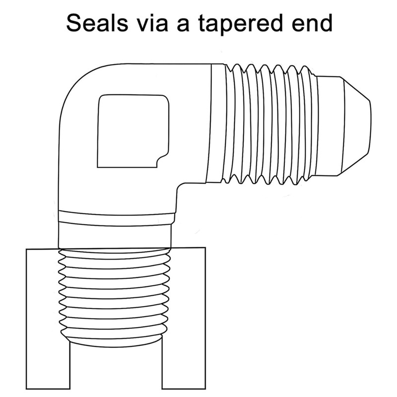 The AN side of the flare is sealed by a 37 degree angle and the NPT thread side issealed by a 60 degree tapered thread.