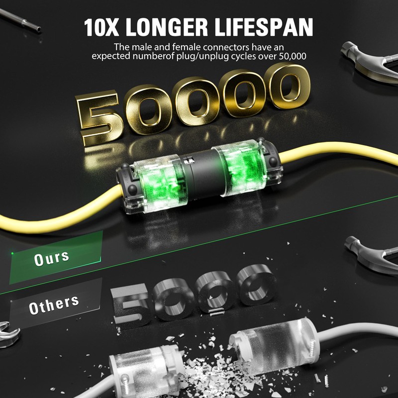 - 💡 Power Flow Indicator with LED Illumination The built-in green neon light illuminates during use, providing instant visibility of power flow in dark workshops or construction sites. Perfect for ensuring safe plug-in and monitoring electrical activity. Ideal for lighted extension cord ends and electrical connectors kit applications.