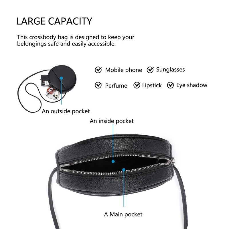 • 【High-quality materials】Stay stylish with the YONBEN Crossbody Round Bag, a trendy circle purse made with durable pu leather and adjustable straps. Strong water resistanceHigh quality metal zipper.It's perfect for carrying your wallet and phone on-the-go.