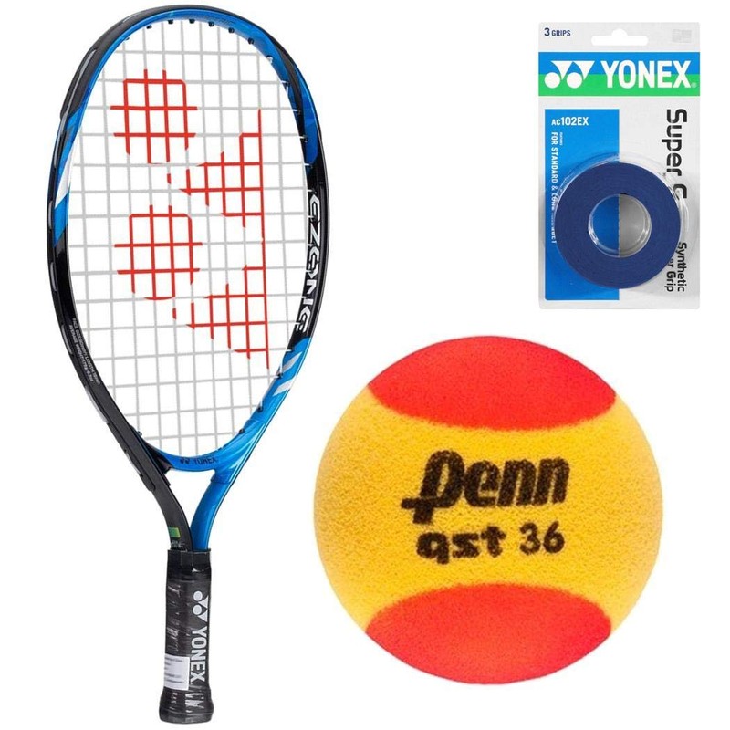 - INCLUDED IN THIS KIT OR SET: Bundled in this starter set is (1) Yonex Ezone Junior Girls' Bright Blue 21 Inch Tennis Racquet, (1) Pack of 3 Blue Overgrips, and (1) 3-Pack of Kids Starter Tennis Balls. They make for the perfect gift or present for the holiday season (Christmas / X-mas, Hanukkah, and Kwanzaa - or birthday), and also make wonderful stocking stuffers!