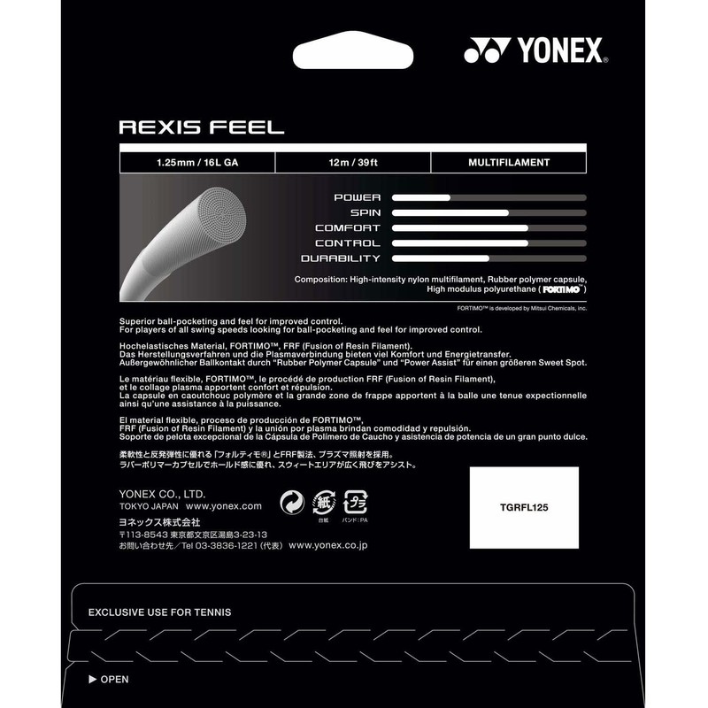 YONEX TGRFL130 Rigid Tennis String String Lexisfeel 130 12m Black (007) 0.5 inch (1.30 mm)