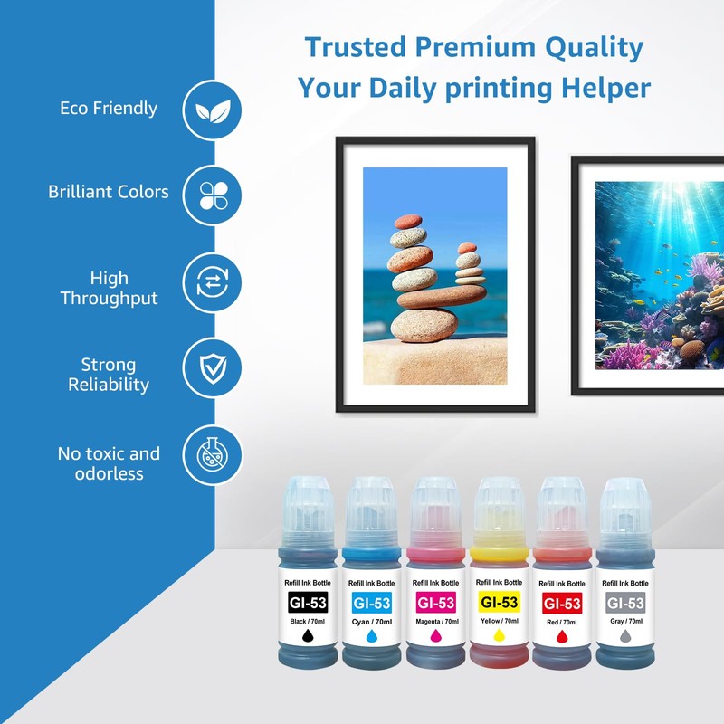 - Reliable printing partner: Each Yongairuink GI 53 ink cartridge undergoes a rigorous quality test to ensure that fade resistant and vibrant colours help you efficiently capture the important moments at work, study and life.
