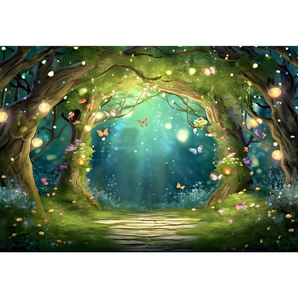 YongFoto Enchanted Forest Backdrop 7x5ft Wildflowers Firefly Butterfly Spring Garden Fairy Tale Wonderland Photography Background Kids Birthday Party Banner Portraits Photoshoot Wallpaper Props