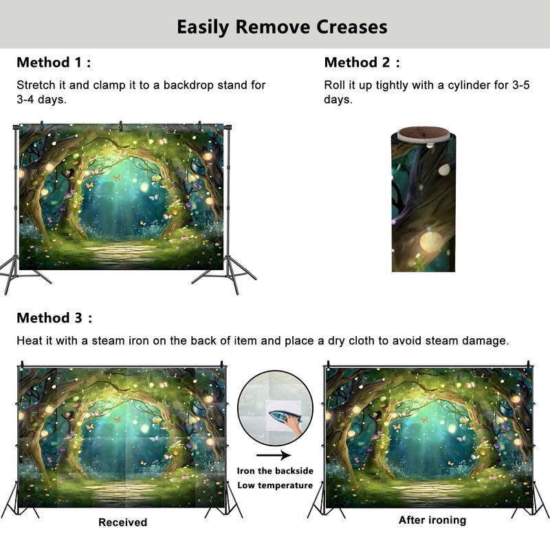 The photo backdrop will be sent folded, so there may be creases when you receive it. But please don't worry, here we suggest: