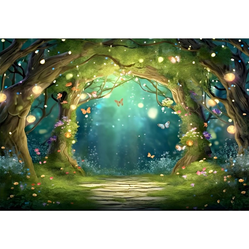 YongFoto Enchanted Forest Backdrop 7x5ft Wildflowers Firefly Butterfly Spring...