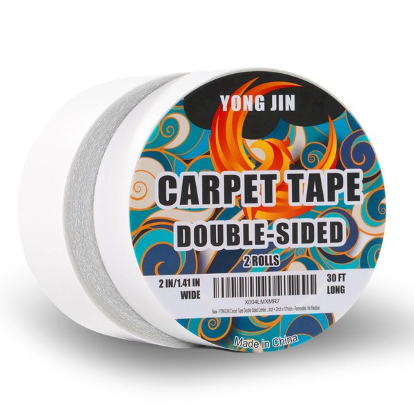 YONGJIN Carpet Tape Double Sided Combo Pack (2 Rolls) - Heavy Duty Rug Tape for Hardwood Floors & Stairs - 1.41Inch + 2Inch x 10Yards - Removable, No Residue