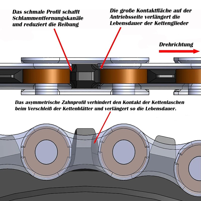 are installed in the inner and outer links, which makes the chain more clamped. This makes the chain