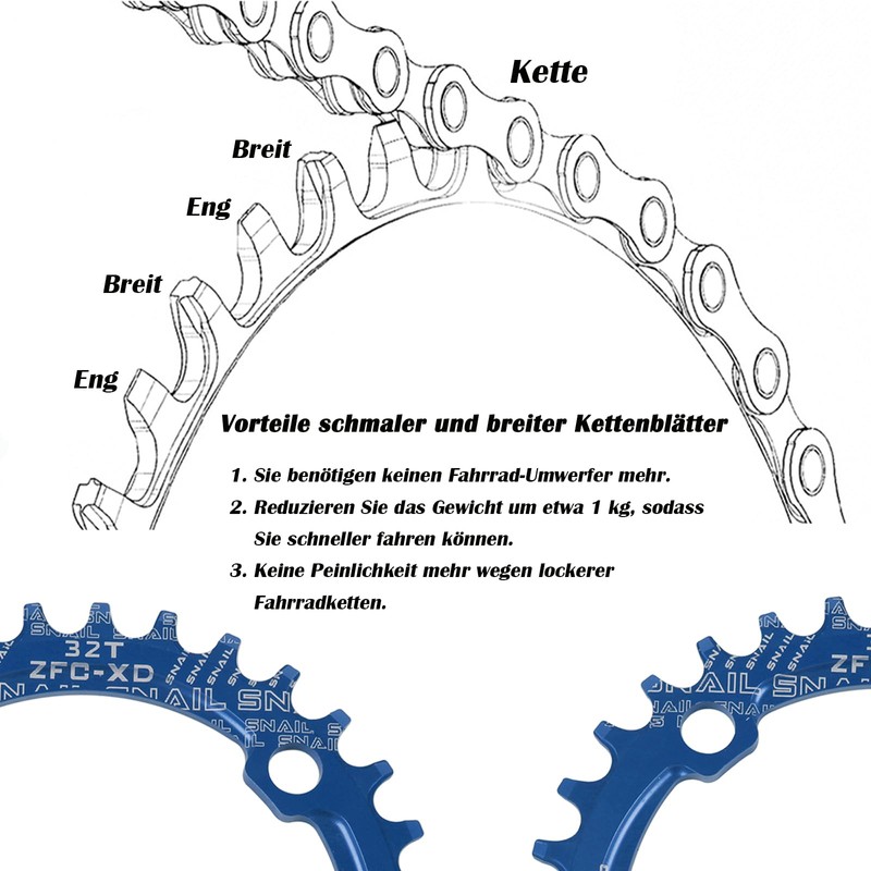- Weight reduction: suitable for single disc modification of the MA/XC model, the weight can be adjusted by approx. 1 kg. Suitable for cranks with 104mm BCD Please make sure your crank has a BCD of 104 mm and the number of teeth is indicated before purchasing. This bicycle chainring is an excellent alternative for bicycle repairs.