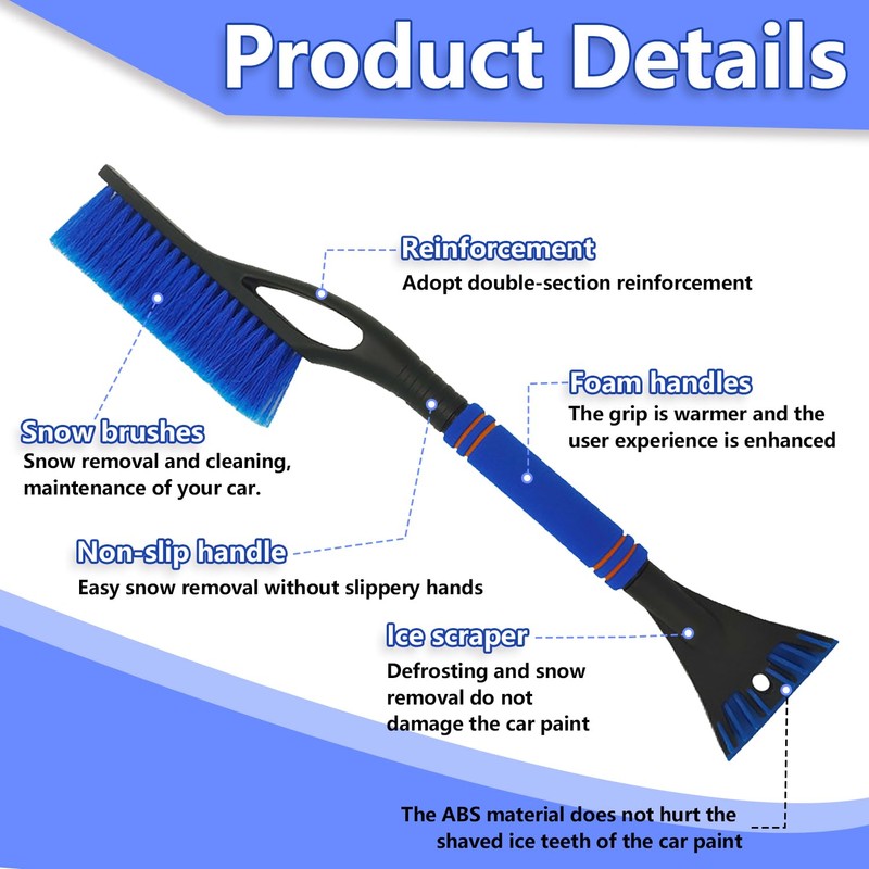 • Protect your vehicle: the scratch-resistant design of our ice scraper car with brush ensures that the soft, hair-like bristles do not damage the paint of your car when removing snow. With the back of the ice scraper car with broom, you can crush ice without damaging your vehicle. With ice scraper car with broom, you can safely remove snow without worrying about scratches or dents.