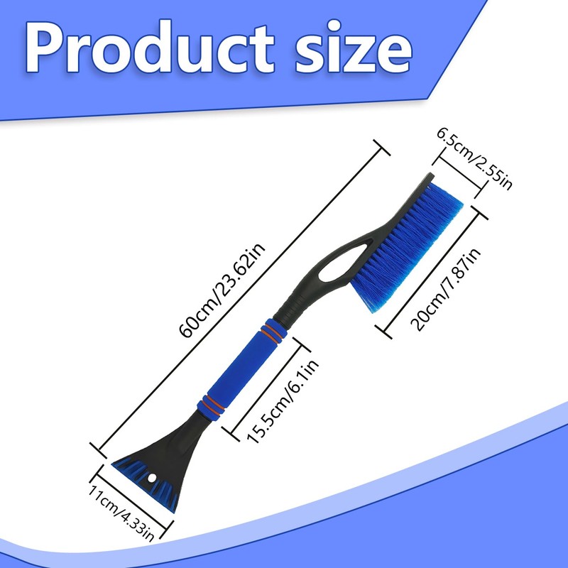 YongSral 2-in-1 Car Snow Brush, 60 cm Ice Scraper Car with Broom, Car Snow Brush, Car Snow Brush, Windscreen Scraper Car with Foam Handle for Car, Truck and SUV (Blue)