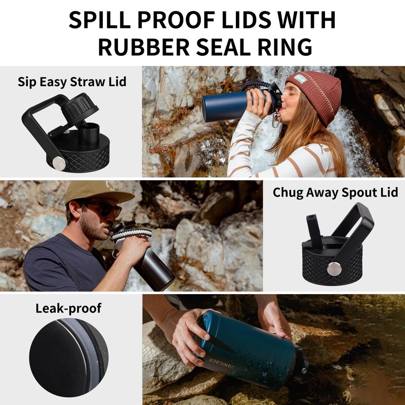 - What you get: We provide continuous after-sales service and 100% customer satisfaction to prevent any leakage or bonding failure. Your purchase includes: YONICOER water bottle, 3 lids, paracord handle, 1 brush, 2 straws, 1 straw brush, 1 cup sleeve, 4 stickers