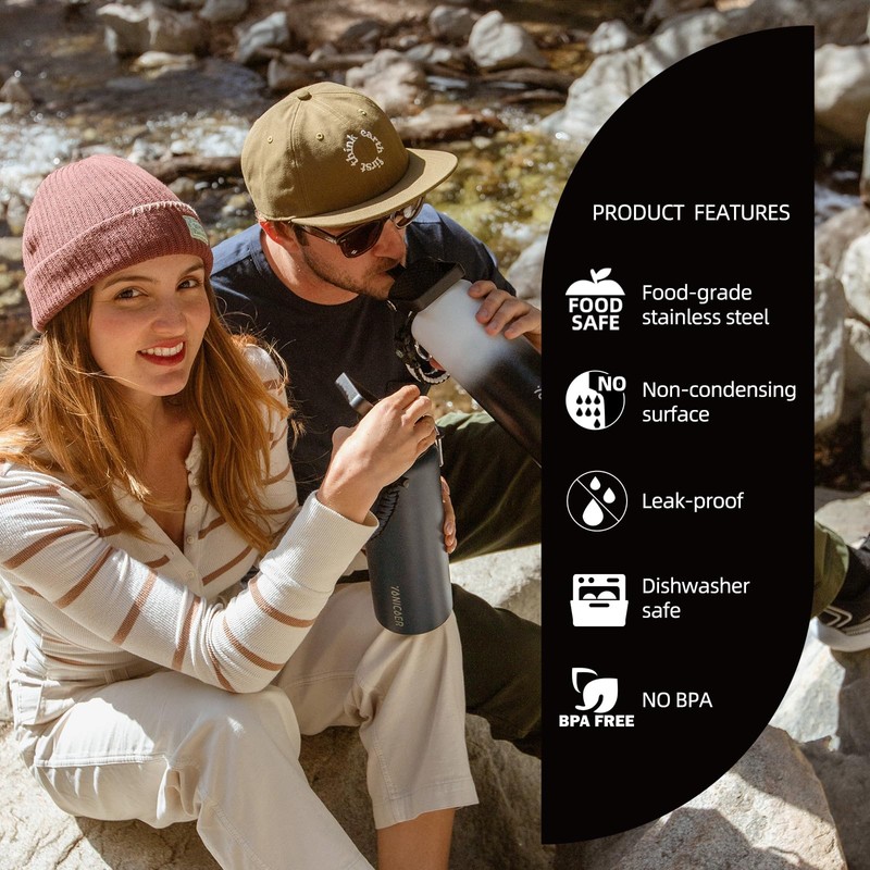 - High-quality materials: Made of food-grade 18/8 stainless steel, it is sturdy and durable and will not rust. The surface is coated with anti-slip powder, anti-oxidation, BPA-free and odorless. Its wide mouth opening allows you to fill ice and clean it easily and quickly. It is dishwasher-safe, making it a perfect water bottle for your daily drinking