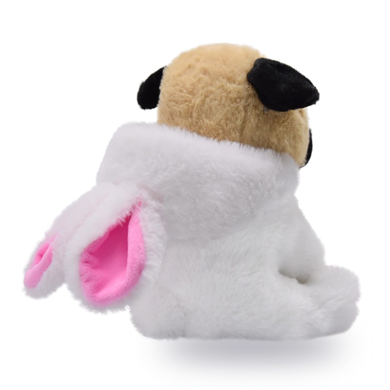 - 【Novel Design】- This plush toy combines the adorable features of a pug puppy with a cute bunny costume, creating a delightfully unique and whimsical appearance