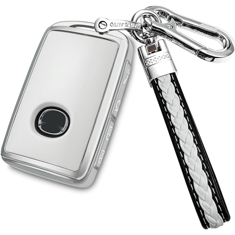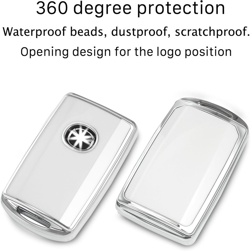 Yonmcfn for mazda key fob cover with metal/leather keychain,TPU 4 Buttons Key case,compatible with 2020 2021 2022 2023,CX-5, CX-3, CX-9 Hatchback Remote smart Key,car Key Accessories,Silver white