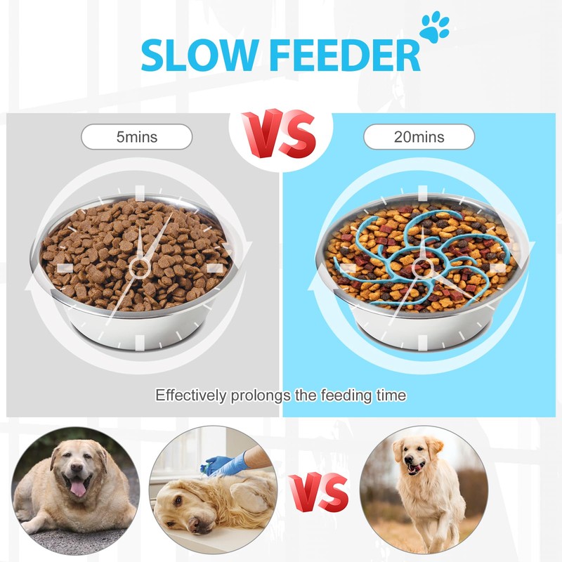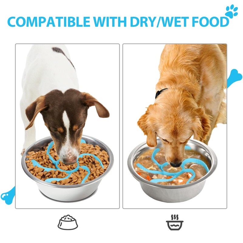 - 【Normal Dog Bowls Become Slow Feeding Bowls】Simply press the slow feeder insert down on the bottom of dog bowls and the dog bowl becomes a slow feeding bowl in seconds. The unique spiral-shaped silicone sheet design allows dogs to effectively slow down their food intake and helps reduce overfeeding and indigestion in dogs.