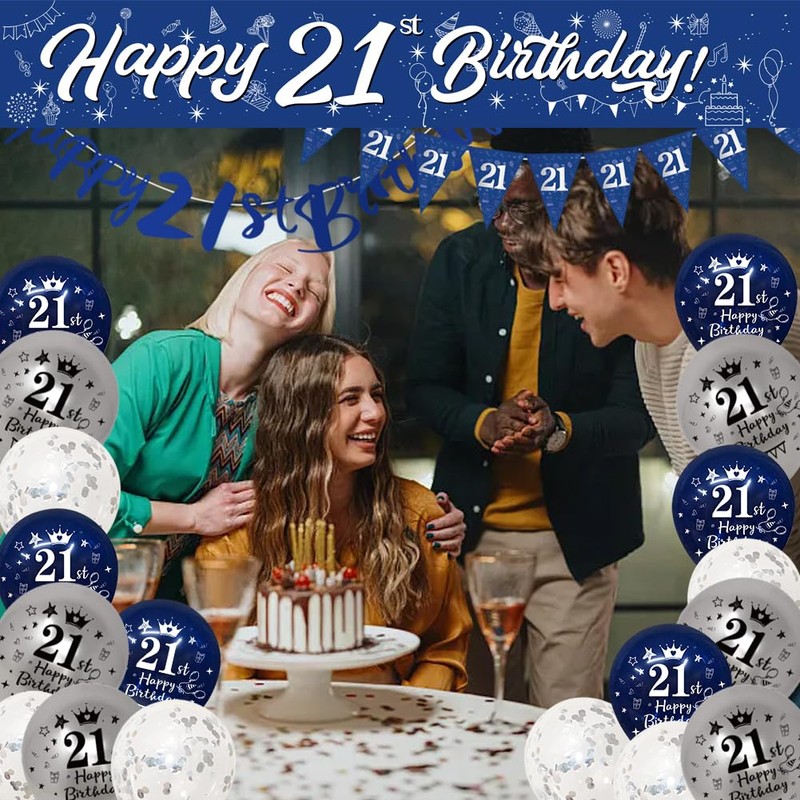 - Navy Blue 21st Decor--The blue silver 21st birthday party banners and balloons can be hung on the wall, door, window, etc. indoors or outdoors. The birthday decoration with navy blue and silver as the theme color which creates a refreshing and happy atmosphere for your 21st birthday.