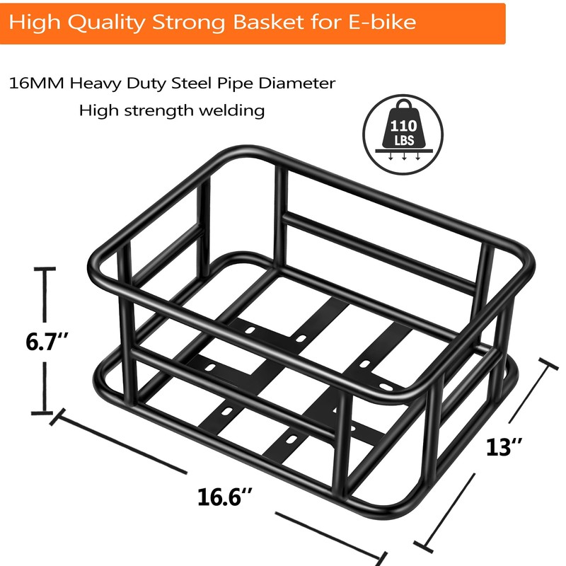 - 【Lightweight Aluminum Basket】This Rear bike basket is made of durable TIG-welded, heat-treated, corrosion-resistance anodized aluminum, thickened main tube;All these make the bike basket will give you a boost and support effectively. The bike basket Rear only weighs 1.1KG (Less than half the weight of a similarly sized iron-framed basket),you will don't feel a thing when riding .