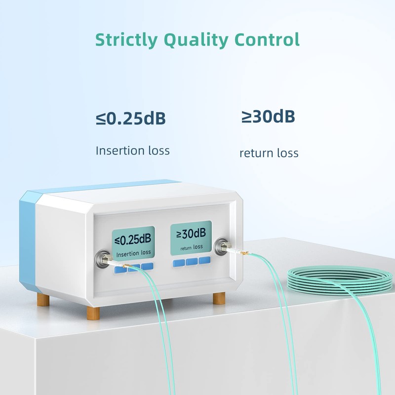 • 【 High Performance MMF 】 7.5mm minimum bend radius, which makes it suitable to be used in narrow spaces; Insertion loss≤0.25(dB), return loss≥30(dB), the low insertion loss and high return loss make sure the stability of transmission; It can work at -20°C to 70°C, which is almost suitable for all common environments; Jacket outside diameter is 2.0mm.