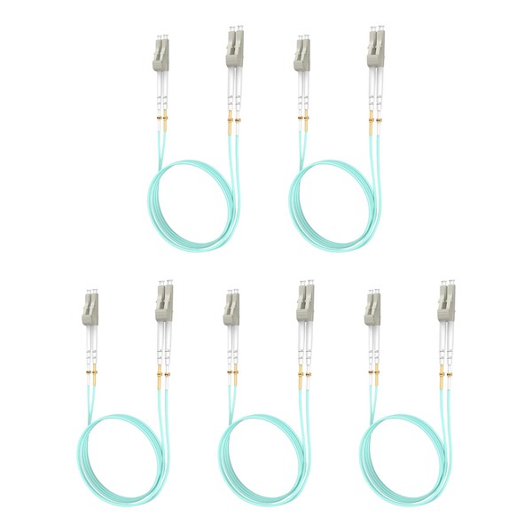 Yonwide Om3 Lc to Lc Fiber Patch Cable 2m (6.56 ft) 5 Pack, Options: 0.2m-200m, OM3 Fiber Lc to Lc Multimode, 10Gb Multi Mode Lc-Lc Fiber Optic Cable OM3 Duplex 50/125μm, Aqua LSZH MM Fiber 2 Meters