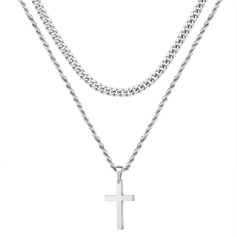 Yooblue Cross Necklace for Men - Stainless Steel Cross Chain Necklace for Men, Mens Jewelry Cross Pendant Cross Necklace, Layered Silver Chain for Men | Yooblue