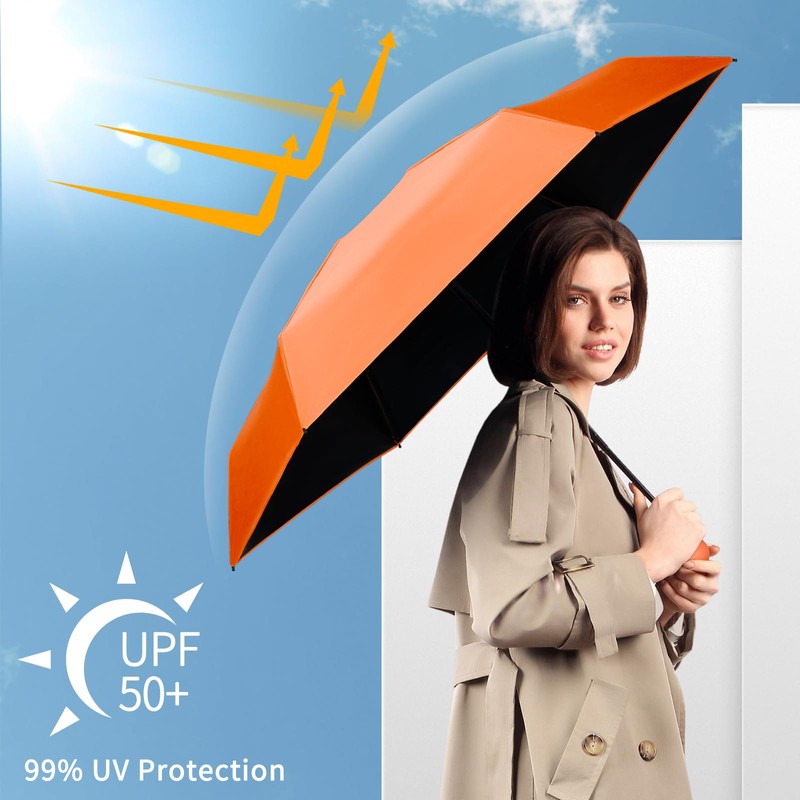 - Excellent Sunscreen Ability: Possessing premium black glue with outstanding light-blocking capability and a UPF rating of 50+, Yoobure sun umbrella uv protection is able to reflect 99% UV rays to cool you down in hot summer. Also, this travel umbrella compact mini is designed with a round handle giving you a comfier holding feeling even for long-term use.