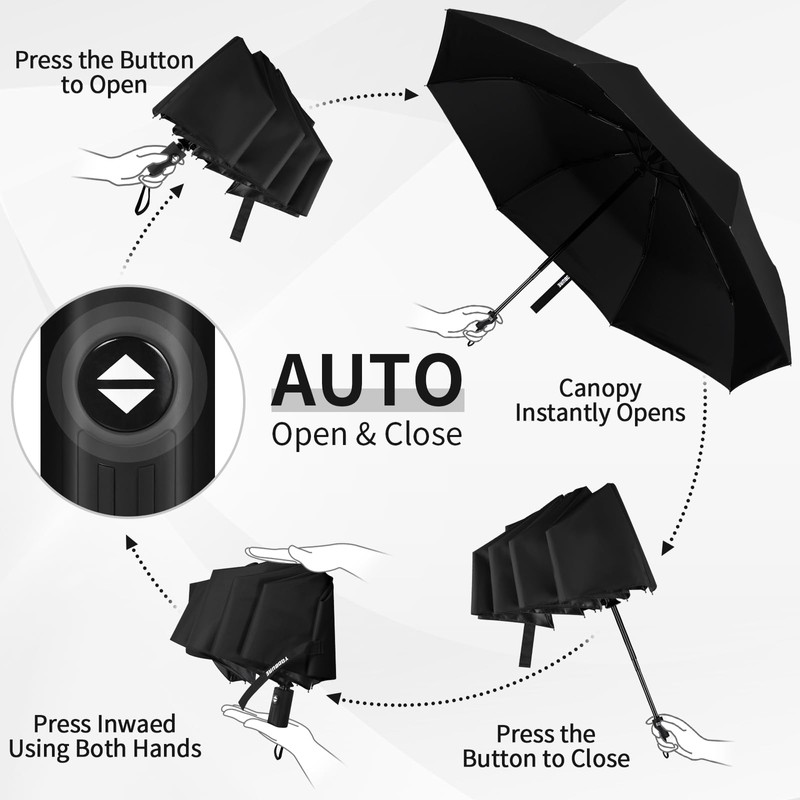 - Easy Auto Open & Close: Poof! Instant rain protection! Just one second and one simple push of the button, the mini umbrella for backpack can be opened/closed in easy way. The automatic rain umbrellas make for convenient one-hand operation, so that you won't be drenched when getting out/in your car.