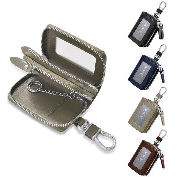 ★【Car Key Case Product Specifications】Size (L x W x Thickness): 3.9 x 2.4 x 1.6 inches (10 x 6 x 4 cm); Weight (approx.): 2.8 oz (82 free pockets with zippers, 2 key rings with chains, 1 360° swivel carabiner 4 colors available: gray, brown, black, navy, colorful and fun to hold this smart key case. A must have for any stylish and fashionable person The texture of this product is unique and has a grain finish that makes it hard to stand out even if you hold it for a long time. Easy to store car keys and keys, compact design fits easily in your pocket or bag. Made of durable material, it is both beautiful and practical for long time use.