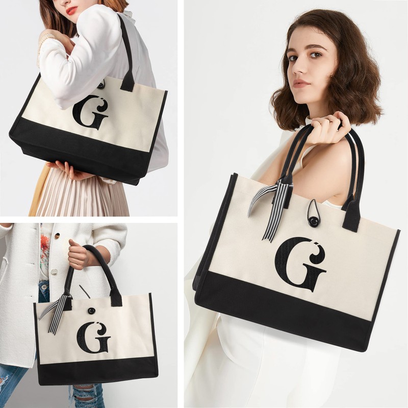 YOOFAN Initial Canvas Tote Bag - Personalized Monogrammed Gift Tote Bag for Wedding, Birthday, Beach, Holiday - Gift for Women, Mom, Teachers, Friends, Bridesmaids (G)