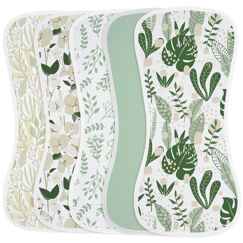 Yoofoss Baby Burp Cloths 5 Pack Burping Cloths for Babies Boys Girls Large 21''X10'' Extra Soft and Absorbent Leaf