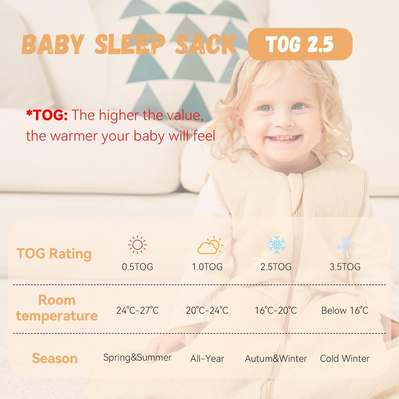 - 【2.5 Tog Baby Sleeping Bag】Our 2.5 TOG sleeping bag is suitable for standard room temperature of 16-20°C, making it a great choice for your baby during winter. There are four sizes of our baby sleeping bags: 0-6 months, 6-12 months, 12-18 months and 18-24 months.
