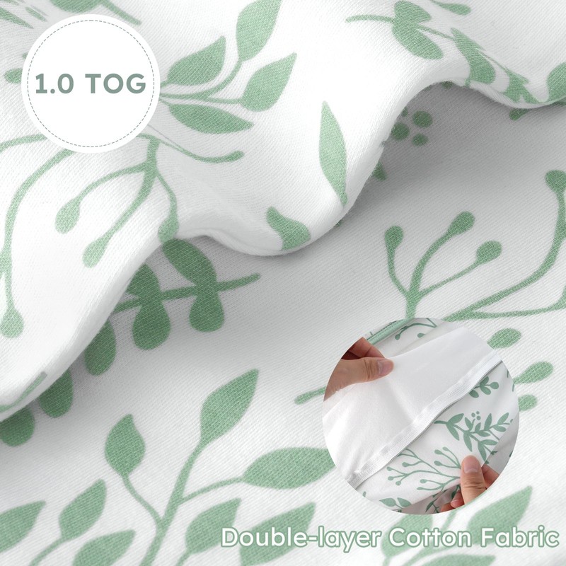 - Soft and cuddly: this baby sleeping bag made of 100% cotton is super soft and breathable for comfort. With two layers of cotton fabric, the 1.0 TOG baby sleeping bag is perfect for all year round, keeping baby cosy and comfortable in A/C room or restaurant, when travelling or napping.