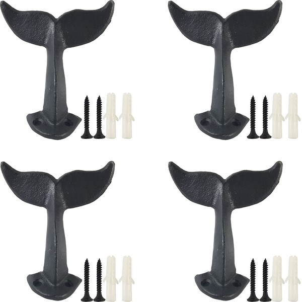 YOOHUA 4PCS Cast Iron Whale Tail Wall Hooks with Mounting Screws