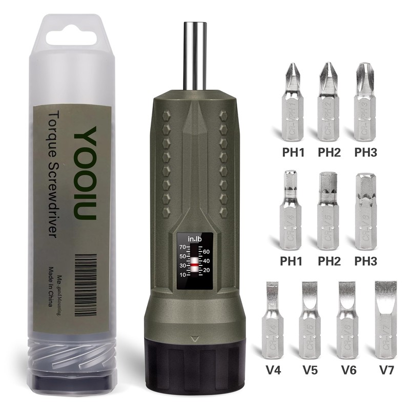YOOIU 11PC S2 Bit Torque Screwdriver Kit with Visual Window - 10-70 in-lb Military Green Driver for Scope Mounting, Firearm & Bike Repair