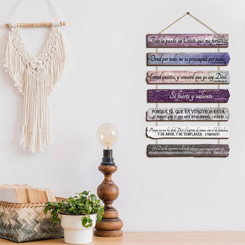 Yookeer Christian Wall Art Office Inspirational Wooden Bible Verses Bedroom Scripture Wall Art Meditation Inspirational Hanging Wood Sign for Kitchen Living Room(Purple,Spanish Style)