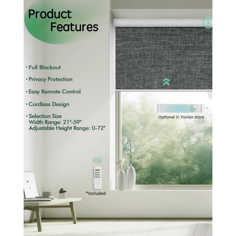 - 【Why Yoolax】We are committed to provide smart, energy-efficient solutions for each customer. Long-term technical assist available. If any components arrive damaged, simply send us photos within 30 days, and we'll arrange a free replacement. If you have higher functional requirements for smart roller blinds, please choose Yoolax custom series. Just choose the "Customize" in size option, then click the yellow "Customize Now" button