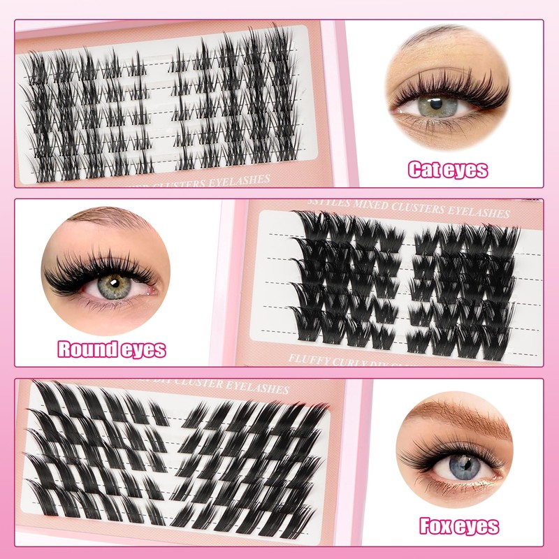 - 3 Style Mixed Lash Clusters: YOONOYA lashes include 3 different lash styles for cat eye, comic book eye, and fox eye lash styles, and these combo lash extensions are available in a variety of lengths to create a natural and striking look