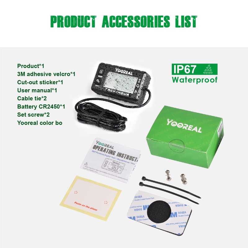 - 【Backlight Display】: Default green backlight, Red backlight will remind the engine Overspeed and maintenance hours arrival;you can set the backlight mode by always-on, OFF and automatical mode(OFF default, button to wake up) as request.