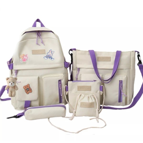 - Modelo: Mochila Set De 5 Bolsa Escolar Lapicera Tote Kawaii Coreana Viaje Hombre Mujer Antirrobo Deportivas Backpack Niña Impermeable Estudiante Cruzada Pechera Casual Gym Dama