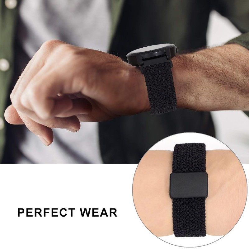 YOOSIDE 20mm Geflochten Elastische Armband mit Magnetverschluss für Garmin Vivoactive 5 / Venu Sq/Venu 2 Plus, Schleife Nylon dehnbares Handgelenk Uhrenarmband für Forerunner 165 (Schwarz)